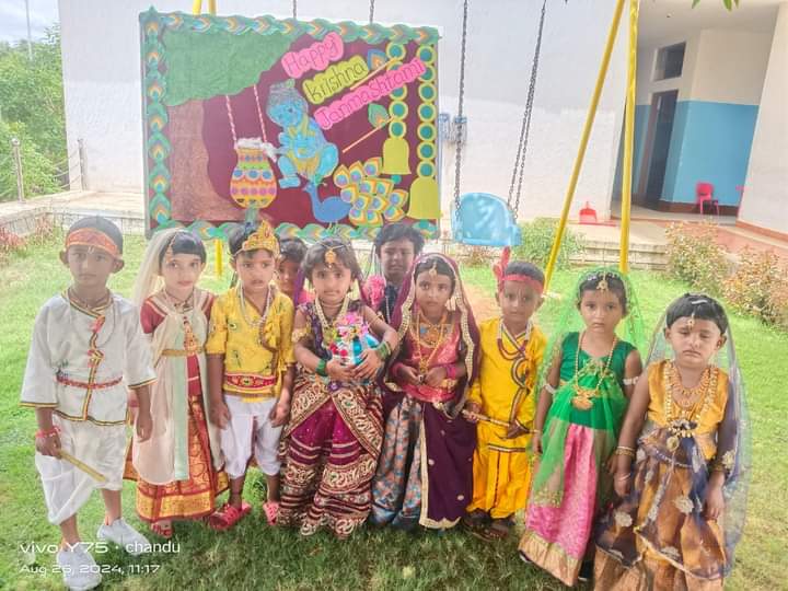 Our Little Ones were dressed up very beautifully as Krishna and Radha. Entire Campus was Blissful to see them